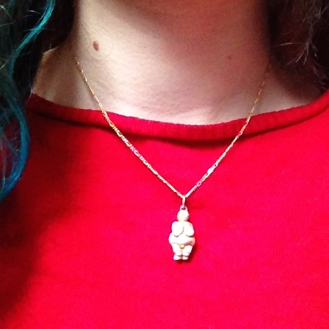 Ich trage eine kleine Replik der Venus von Willendorf um den Hals. Aus meiner Sicht ein angemessenes Symbol für mein Neuheidentum in ihrer neuen, künstlichen Form die sich auf die graue Vorzeit bezieht. Wir wissen nicht welchem Zweck sie einst diente, welchen Sinn man ihr einst zuwies, doch trägt für mich diese Aura des Mysteriösen zu ihrer Potenz bei.
